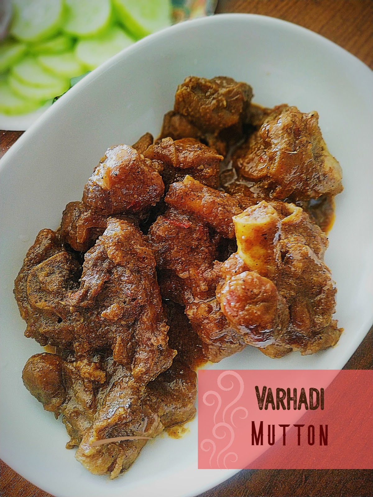 Once the chilli paste was done, the actually cooking started. I noticed the change in look and feel of the gravy base when the secret paste was added. The flavours were very unique and appetizing. Nothing I had have before. The color was also on the blackish side, which is signature to this cuisine. Finally it was kind of a picnic feel when we all sat down on the floor, placing all the food on top pf newspapers. The whole house was already smelling of the secret masala. I had made Indrayani rice to go with the mutton. Its a special kind of fragrant rice found in this part of the country which I like better than basmati. It needs to be cooked with a little more than required water to give that mushy texture. A dollop of ghee and the mutton tasted like a piece of heaven. It was not until we finished our food that my friend finally gave away the name of his recipe - Varhadi mutton. He also said, this preparation is so very traditional that its hardly found commonly in Pune. Nonetheless here is his special recipe for it.
